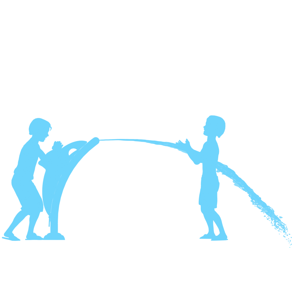 Børn kan interagere ved at dreje delfinen og løbe under vandkanonen