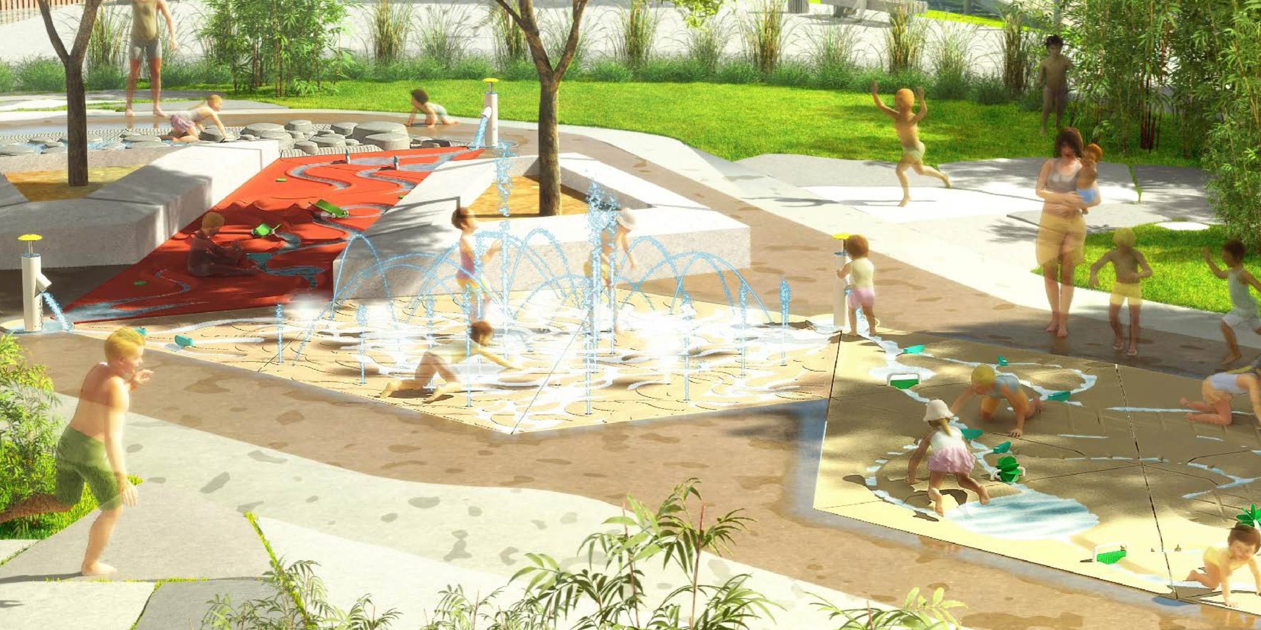 Der sker noget særligt, når man tilføjer vand til spillet. Tænk på lyden af børn, der leger i og med vand – griner og hviner af glæde – det er unikt for en vandlegeplads.